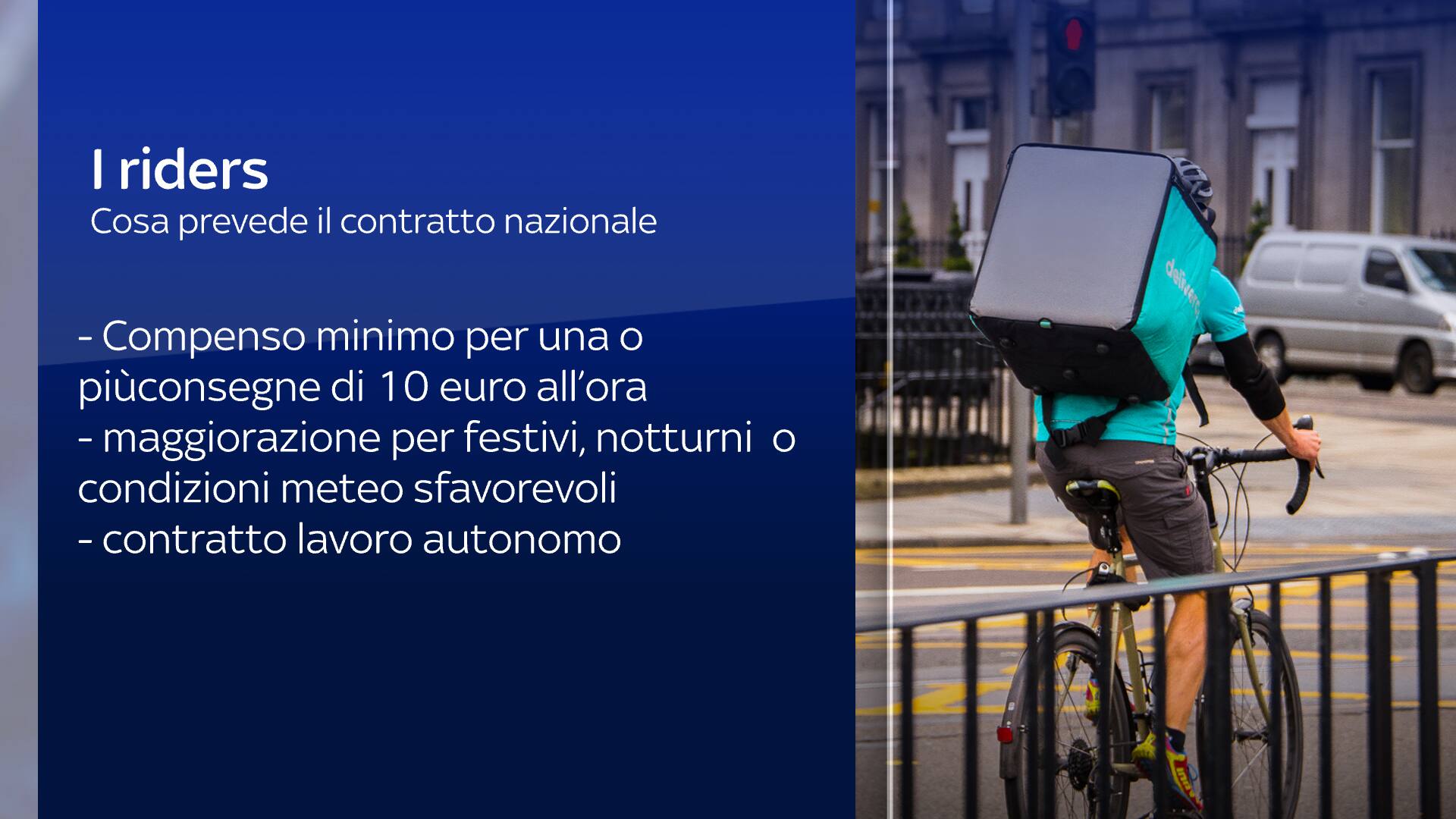 In base al contratto il lavoro rimane a cottimo, basato sull’algoritmo che affida le consegne. È prevista una paga oraria con maggiorazioni in determinate condizioni, e l'assicurazione sanitaria. I rider però continuano a essere inquadrati come lavoratori autonomi. Alla luce dell'inchiesta della procura di Milano questo contratto probabilmente andrà riscritto.