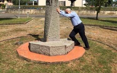 Quanto al critico d'arte, si è incontrato con il sindaco Mario Agnelli, ha fatto visita allo stesso Roggi quindi si è recato al parco dove c'è la statua. Sgarbi ha scherzato con alcuni abitanti, poi si è avvicinato e ha finto il movimento di abbatterla. "Prima o poi - ha detto sorridendo e scritto poi sui social - riuscirò a buttarla giù". La statua è stata di recente imbrattata da ignoti, con vernice rossa, e poi subito ripulita dal Comune. (ANSA).