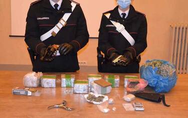 Nella casa sono stati trovati 8,5 chili di hashish, 30 grammi di marijuana e 4,5 di cocaina, sostanza da taglio e due pistole detenute illegalmente, tra cui revolver calibro 38 e una scacciacani modificata, con relative cartucce. La droga era nascosta nel ripostigli in alcuni sacchi della spesa, le armi erano nei cassetti della cucina. Quando è stato fermato dai carabinieri, nel comune di Poggiardo (Lecce), mentre viaggiava a bordo di un furgone carico di sostanza stupefacente, l'uomo era in compagnia di una 23enne ucraina, anche lei arrestata. Entrambi sono accusati di traffico di stupefacenti. Il 35enne dovrà rispondere anche di possesso illegale di armi. (ANSA).