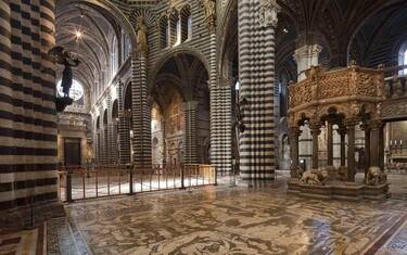 (ANSA) - SIENA, 07 DIC - Una cospicua selezione di disegni, manoscritti, documenti di archivio, fotografie rivela come dal '200 alla metà del secolo scorso il Duomo di Siena sia stato osservato, interpretato e proposto da pittori, disegnatori, incisori e fotografi. Questa l'esposizione temporanea 'L'immagine del Duomo di Siena: 1223 - 1944' inaugurata oggi e visitabile fino al 7 gennaio. La rassegna si sviluppa in due luoghi significativi: la Cripta, racchiusa tra il Battistero e l'antico presbiterio, cuore pulsante della Cattedrale, e la sala del Palazzo Arcivescovile, straordinariamente aperta a tutti. La mostra si suddivide in nove sezioni e prende in esame l'esterno della Cattedrale, le processioni, l'interno del Duomo, la Libreria Piccolomini, la Confessione, Il Battistero e la Scalinata di San Giovanni, le piazze e i palazzi intorno al Duomo, i restauri, le guide e i libri sul Duomo di Siena. In sostanza presenta, attraverso delle vedute, l'evoluzione della Cattedrale. L'esposizione temporanea, a cura di Alessandro Leoncini e Chiara Nencini, fa parte del percorso del Complesso Monumentale del Duomo di Siena insieme alla Cattedrale, alla Libreria Piccolomini, al Museo dell'Opera, al Panorama dal Facciatone, al Battistero e, appunto, alla 'Cripta' e straordinariamente alla sala aperta di Palazzo Arcivescovile.