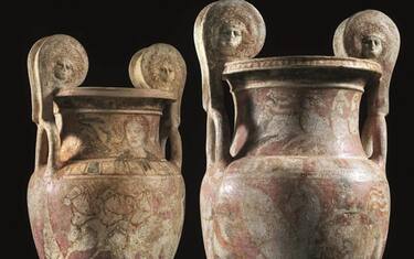 Tra oggetti battuti sarcogafo, ritratto romano e coppia crateri
