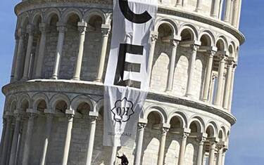 (ANSA) - PISA, 02 MAR - Un grande striscione con la scritta 'pace' è stato srotolato stasera dalla Torre pendente di Pisa e occupa quattro anelli del campanile più celebre al mondo. E' l'iniziativa promossa dall'Opera Primaziale pisana per chiedere la fine della guerra in Ucraina. Il monumento pisano dalle 18.30 alle 22.30, si spiega in una nota, "sarà illuminato con la parola pace con l'idea di inviare al mondo il potente messaggio che questa parola porta con sé, in questo difficile momento e in ogni altro della storia dell'uomo".