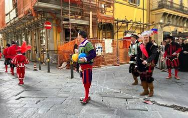 (ANSA) - FIRENZE, 17 APR - Sorteggio stamani - come da tradizione nel giorno di Pasqua prima dello Scoppio del carro atteso per le 11, in una piazza del Duomo tornata, dopo l'emergenza Covid, a ospitare anche il pubblico per la più antica tradizione fiorentina -, per l'abbinamento delle partite del torneo del Calcio storico fiorentino. La prima semifinale vedrà in campo Azzurri contro i Bianchi, la seconda Rossi e Verdi. Si giocherà a giugno, con finale il 24 per la festa di San Giovanni. Per non dimenticare la guerra in Ucraina e come messaggio di solidarietà e di pace, il pallaio del calcio storico stamani aveva con sè un pallone di colore giallo e uno azzurro per richiamare la bandiera ucraina.