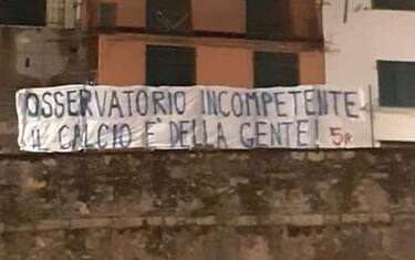 (ANSA) - GENOVA, 18 GEN - Scritte e striscioni che scaldano il clima in vista del match Genoa-Milan di lunedì sono comparsi questa notte allo stadio Luigi Ferraris e in altre parti della città. "Se l'ordine pubblico volete tutelare non dovete provocare", recitava uno striscione all'ingresso della tribuna mentre un altro all'uscita del casello di Genova Nervi: "Avete rotto il ca…lcio". Un altro striscione è comparso in corso Europa: "Lunedì ore 15 la morte del calcio" Infine in corso Saffi in centro città: "Osservatorio incompetente il calcio è della gente". Sempre all'uscita del casello di Nervi è stata anche fatta una scritta di insulti contro la squadra rossonera.