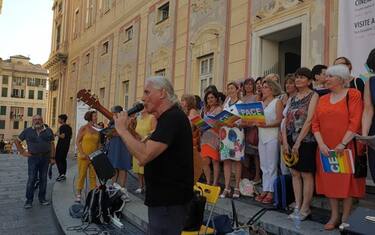 (ANSA) - GENOVA, 3 LUG - Da Fabrizio De Andrè a Giorgio Gaber, passando per Bob Dylan e Johan Baez, Da Francesco De Gregori a Pierangelo Bertoli. Per una volta l'ora di silenzio per la pace, che da 892 settimane si tiene il mercoledì in piazza De Ferrari a Genova, diventa un momento di musica, per ringraziare Carola Rackete, la comandante della Sea Watch3, arrestata e poi liberata dopo il salvataggio di 42 migranti. In scena, quindi, i quattro più importanti cori genovesi, Daneo, Quattro Canti, Cantolibero e Quarto Coro per il concerto "Quattro cori per Carola", un'iniziativa di solidarietà e sensibilizzazione. "Noi vogliamo festeggiare - spiega Norma Bertulacelli, una dei pacifisti genovesi che animano l'iniziativa - anche perché avevamo organizzato la cosa per esprimere solidarietà a Carola Rackete e, ora che abbiamo saputo che è giustamente libera facciamo festa con canzoni degli anni 60 e 70 che parlano di un mondo più giusto".