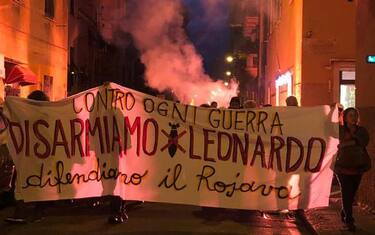 Sono circa 200 i manifestanti partiti da piazza Baracca a Sestri Ponente dietro lo striscione "Contro ogni guerra disarmiamo Leonardo. Difendiamo il Rojava". La manifestazione è stata indetta dall'assemblea contro la guerra nata dopo la lotta di un gruppo di portuali genovesi contro le navi della flotta Bahri che trasportano armi per l'Arabia Saudita, scalando anche il porto di Genova. Leonardo Finmeccanica è accusata dai promotori del corteo "di fare profitti sulla vita delle persone". Al corteo partecipano portuali, antagonisti, pacifisti e anarchici dell'ala più radicale con uno striscione in solidarietà con Alfredo Cospito e Nicola Gai, in carcere per il ferimento del manager di Ansaldo nucleare Roberto Adinolfi (Genova, 7 maggio 2012). Nel corteo anche uno striscione "Contro l'état policier. Libéret Vincenzo" con riferimento a Vincenzo Vecchi il manifestante condannato per i fatti del G8 a cui la Francia non ha concesso l'estradizione.