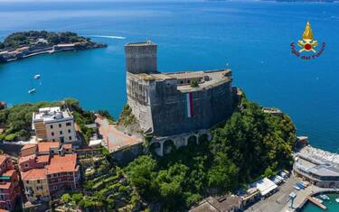 Alcuni Vigili del Fuoco specializzati in tecniche di derivazione Speleo Alpinistico Fluviale hanno calato, sulle note dell'Inno di Mameli, il tricolore dalla parete ovest del castello, alla presenza del sindaco Leonardo Paoletti e del Comandante Provinciale Vigili del Fuoco, che hanno espresso parole di ringraziamento, di soddisfazione e di speranza per il futuro.