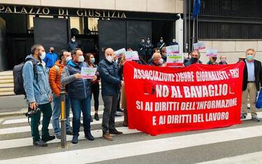 Presidio giornalisti in tribunale. Agenti chiedono abbreviato