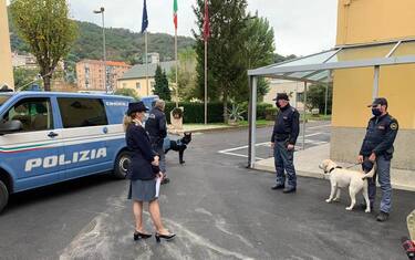 L'indagine ha portato al sequestro di 16 kg di hashish, 1,3 kg di marijuana, un etto di cocaina e 55 mila euro in contanti. Con i poliziotti anche due cani del nucleo cinofilo di Genova, Leo e Nagut ). (ANSA).
