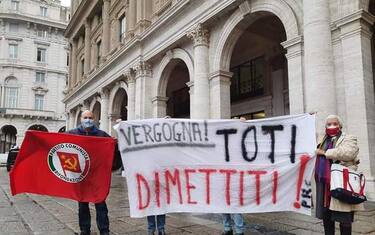 "Vergogna! Toti dimettiti". È il messaggio di uno striscione esposto per qualche minuto davanti al palazzo della Regione Liguria, nel corso di un 'blitz' di alcuni militanti di Rifondazione Comunista. Una protesta simbolica "per esprimere la nostra indignazione nei confronti del presidente della Regione. Non merita di ricoprire una carica così importante chi definisce 'improduttivi' gli anziani - ha detto Maurizio Acerbo, segretario nazionale di Prc Se - Gli anziani sostituiscono lo stato sociale, sostengono le famiglie, badano ai nipoti, con le loro pensioni aiutano figli e nipoti precari e disoccupati, mandano avanti associazionismo e volontariato. Al contrario degli anziani che ha offeso, Toti è non solo improduttivo ma anche dannoso. Non solo in Liguria ma anche a livello nazionale, come vicepresidente della Conferenza delle regioni"