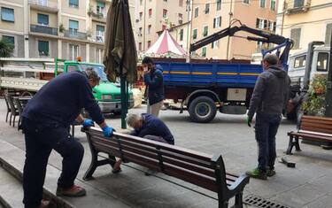 Sono state smontate e portate via, una a una, le panchine del centro storico della Spezia. Una misura che è stata adottata dal Comune, su indicazione della questura, per evitare assembramenti nel fine settimana. Ma il provvedimento ha suscitato i 'mugugni' degli anziani frequentatori delle piazze Sant'Agostino e del Bastione: contrariati, si sono presentati in piazza con le sedie portate da case e prese nei bar per mettersi a chiacchierare. "Levate le panchine? Portemo e careghe" si legge su un foglio appeso sullo schienale di una sedia.