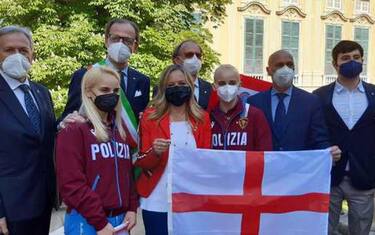 (ANSA) - GENOVA, 09 MAG - Si è svolta questa mattina a Palazzo Tursi la cerimonia di consegna della Bandiera di Genova alla delegazione di atleti genovesi che parteciperanno ai prossimi Giochi Olimpici di Tokio. Accompagnati dal presidente del Panathlon Club Genova Maurizio Daccà, sono stati ricevuti dal vicesindaco Massimo Nicolò, dall'assessore ai Grandi Eventi Paola Bordilli e dai consiglieri delegati agli Eventi Sportivi Stefano Anzalone e ai Rapporti Enti Sport Vittorio Ottonello nell'ufficio di rappresentanza: il nuotatore fresco di primato italiano delle Fiamme Oro Alberto Razzetti, il nuotatore genovese e già medaglia d'oro alle ultime Paraolimpiadi Francesco Bocciardo, le ginnaste Alice e Asia D'Amato già bronzo ai Mondiali di Stoccarda. "Il vessillo di San Giorgio - ha detto Nicolò - accompagnerà tutti gli atleti genovesi e liguri ai prossimi giochi olimpici, farà sentire il tifo di tutta Genova" "Quando a dicembre sembrava che gli azzurri sarebbero andati a gareggiare a Tokyo senza le insegne della propria nazione - ricorda Daccà - ho proposto all'amministrazione di dare il vessillo crociato di San Giorgio, la nostra bandiera, che da sempre era stata concessa per le grandi imprese sin dai tempi della Repubblica di Genova. Tutti gli atleti avranno anche un vademecum con la storia della bandiera della loro città, con i principi dello sport e l'atteggiamento di fair play che promuoviamo. Grazie alla collaborazione di Megumi Akanuma, ambasciatrice di Genova nel mondo, troveranno nel vademecum uno sguardo sul paese del Sol Levante dove gareggeranno". (ANSA).