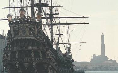 (ANSA) - GENOVA, 05 GEN - Perde pezzi il Galeone del film Pirati di Roman Polanski ormeggiato al porto antico di Genova.