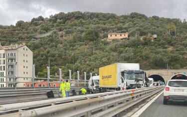 (ANSA) - GENOVA, 29 SET - Incidente in A12 tra Genova est e Genova Nervi con due mezzi pesanti e due furgoni coinvolti. Ci sono tre feriti lievi portati in codice giallo all'ospedale San Martino. L'incidente è avvenuto poco dopo le 8 ed ha causato fino a 6 km di coda in direzione Livorno. Secondo le prime informazioni uno dei mezzi pesanti è rimasto fermo di traverso bloccando la carreggiata. Sul posto sono intervenuti i vigili del fuoco, la polizia stradale e il personale di Aspi, oltre ai mezzi del 118. (ANSA).