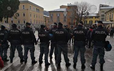 (ANSA) - TERAMO, 5 GEN - Un gruppo di una cinquantina di simpatizzanti di Potere al popolo e Teramo Antifascista ha contestato il ministro dell'Interno Matteo Salvini, in visita a Teramo nella due giorni abruzzese a sostegno dei candidati della Lega alle elezioni regionali. Al canto di 'Bella ciao' e urlando slogan del tipo 'Lega Salvini e lascialo legato', 'Siamo tutti antifascisti', il gruppetto ha tentato di avvicinarsi al corteo di auto che accompagnava il vicepremier, in visita privata al vescovo di Teramo dopo aver incontrato i cittadini. I manifestanti sono stati tenuti a debita distanza in piazza Martiri, dove anche oggi si svolge il mercato, da un nutrito plotone di agenti della Polizia del reparto celere. Il ministro, costretto a modificare il programma, saltando la passeggiata al mercato perché trattenuto oltre un'ora dalla folla che ha voluto scattare selfie con lui, si è intrattenuto circa mezz'ora dal vescovo Lorenzo Leuzzi prima di ripartire per Roseto degli Abruzzi dove incontrerà balneatori e imprenditori marittimi.