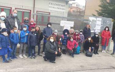 (ANSA) - L'AQUILA, 01 MAR - Un sit-in pacifico di protesta contro l'interruzione delle lezioni in presenza anche alle scuole elementari e medie è stato organizzato da parte di alcuni genitori della scuola Celestino V.