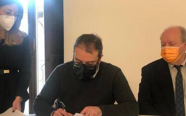 Successivamente sindaco, rettori, presidente e vice presidente hanno effettuato un rapido sopralluogo dell'immobile che ospiterà la sede della Fondazione, a Piazza Santa Maria Paganica. (ANSA).