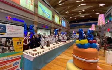 (ANSA) - TERAMO, 28 NOV - Una grande torta di ben 10 metri è stata realizzata dagli allievi dell'Istituto Alberghiero "Di Poppa-Rozzi" di Teramo in occasione dell'anniversario del centro commerciale Gran Sasso, che ieri ha festeggiato quindici anni di attività.