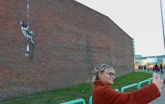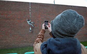 Diverse le persone che si sono fermate a fotografare l'opera attribuita a Banksy