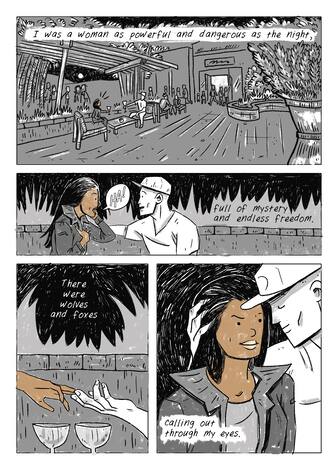 Nel 2020 Drawing Power (Abrams) e Be Gay, Do Comics (IDW), antologie in cui compaiono i suoi fumetti, vincono l’Eisner Award e l’Ignatz Award. In mostra potete ammirare All These Years, una storia di quattro tavole tratta dall’antologia Drawing Power: Women’s Stories of Sexual Violence, Harassment, and Survival. Il suo prossimo romanzo a fumetti è Of Sea and Venom, e sarà pubblicato da Farrar, Straus and Giroux