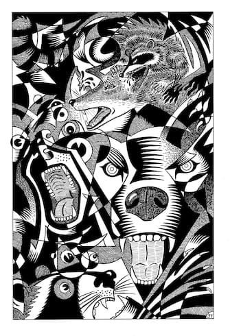 MARGOT FERRICK - Margot Ferrick è nata nel 1988 a Long Island e vive a Chicago. Tra le sue pubblicazioni, Yours e Dognurse, entrambi inclusi nell’antologia Best American Comics e nominati per gli Ingnatz Awards. Le tavole esposte sono relative a una storia completa di Petso, webcomic apparso su Vice.com che presto sarà esteso e pubblicato in forma cartacea. Petso descrive le vite di due creature: una disperatamente decisa a diventare un animale domestico sottomesso e viziato, l’altra alla ricerca della propria libertà