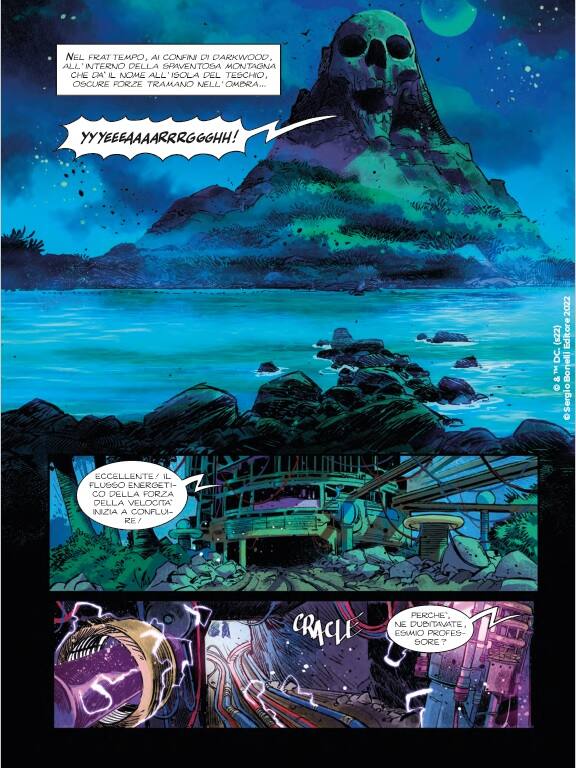 MU: A me ha divertito che l’innesco della storia venga da un bambino. Non volevamo perdere un obiettivo: noi avevamo iniziato a leggere questi fumetti che avevamo tra i 6 e i 10 anni. Con Giovanni ci siamo detti che se oggi un ragazzino prende in mano questa storia si deve innamorare di questi personaggi, perché anche se continui a leggerli pure superati i 40, i supereroi nascono per far divertire i ragazzini. Non volevamo perdere di vista questa cosa, volevamo divertirci noi ma fomentare tantissimo i ragazzini che lo avrebbero letto. Allo stesso modo mi è piaciuto puntare l’attenzione su Darkwood come crocevia di generi narrativi evidenziando quanto questa fosse la concezione più geniale di Sergio Bonelli. Poi ci sono anche dei momenti singoli che ho amato: Flash e l’Antiflash che si rincorrono risalendo la cascata, o citare l’invenzione di Titan di Hellingen mettendo insieme King Kong – come richiamo alla natura di Grodd – e Titan. Tra l'altro tutta la storia è ambientata nell’Isola del Teschio che è dove si svolge il King Kong del '33. In qualche modo avevamo avvisato il lettore. E poi ci ha divertito moltissimo vedere Flash e Zagor disegnati nelle stesse vignette da Davide.