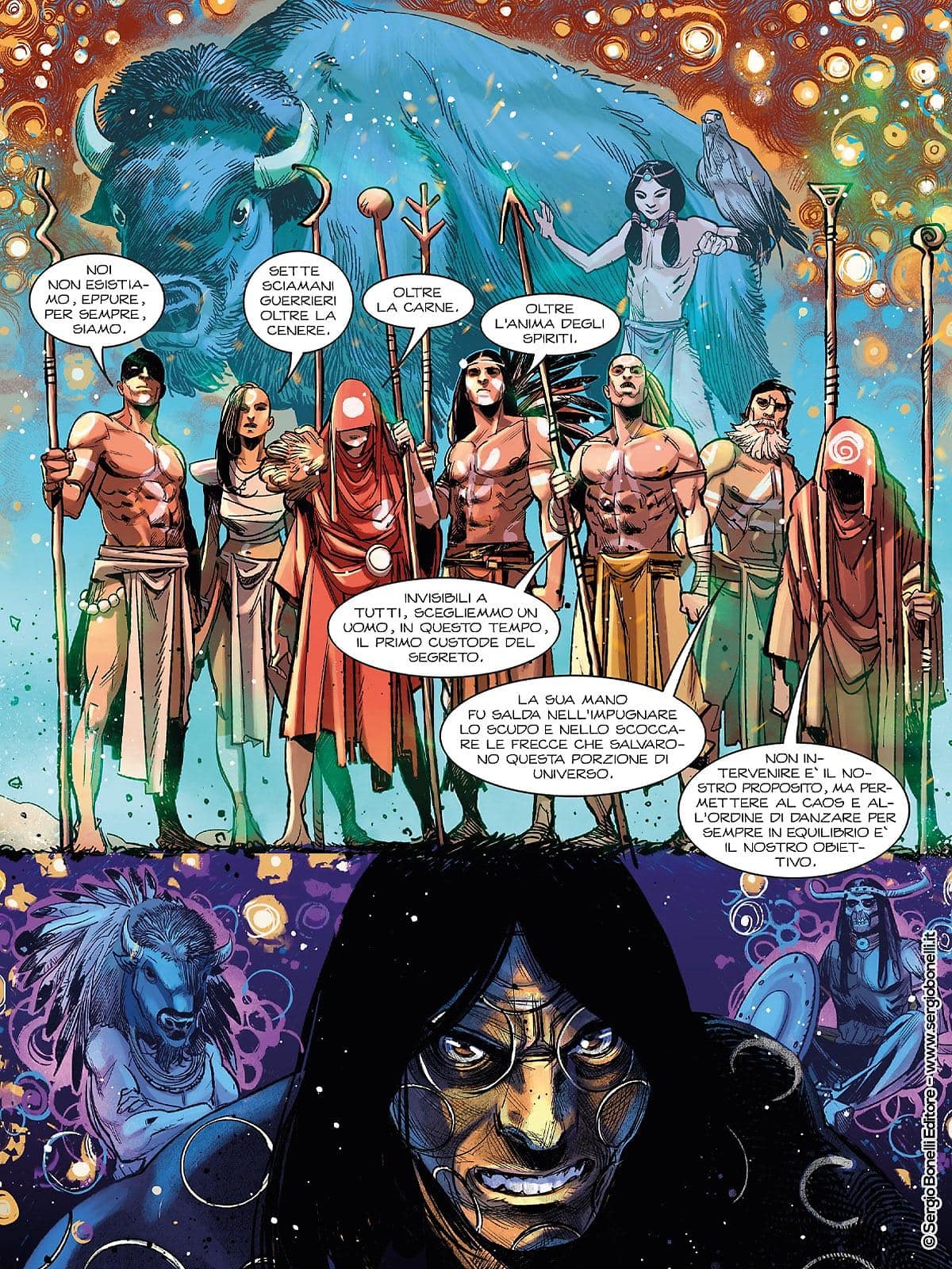 MU: Sono moltissimi. La prima cosa a cui abbiamo pensato è cosa si sarebbero detti se si fossero trovati seduti attorno al fuoco. Abbiamo usato come faro una vecchia storia di Geoff Johns in cui si vede Superman che vola e in didascalia Barry Allen dice “Superman vola troppo alto”; si vede Batman nelle fogne e dice “Batman si muove tra le ombre della notte”; si vede Wonder Woman all'Onu e dice “Wonder Woman parla con gente troppo lontana da noi”. Poi si vede Flash e Barry dice: “E io? Io corro tra la gente”. Lo stesso fatto che la run di Flash più famosa di Waid si chiami Born to run ci ha fatto pensare che Flash è il Bruce Springsteen dei fumetti. E Zagor è esattamente questo, percorre a piedi l’America con Cico, una vita costellata dai raduni dei suoi amici trapper e i saloon, è un eroe del popolo anche lui. Poi mettici che entrambi indossano una casacca rossa con un simbolo giallo al centro e hanno una origin story particolare: condividono la perdita dei genitori, come molti altri, ma loro hanno una cosa in comune: entrambi hanno perso la madre per colpe fatte ricadere sui padri. Per molto tempo a Barry viene fatto credere che il padre abbia ucciso la madre, Zagor è a lungo convinto che il padre abbia scatenato una carneficina che ha poi portato alla morte della madre. Sono poi entrambi eroi puri della Silver Age che combattono contro nemici bizzarri.