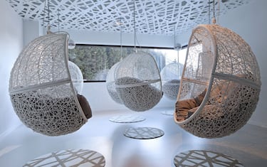 Vasche idromassaggio, percorsi kneipp, cascate d’acqua, bagno giapponese, bagni a vapore, saune e biosaune, stanze del sale, aree relax. La Sauna Chèder di QC Terme Dolomiti è la prima ad offrire la visione di un palinsesto di cortometraggi dedicati alla natura (in foto) e la La Sauna Perlage vede oltre 150 bottiglie firmate Ferrari Trento rivestire le pareti esterne