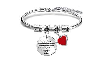 Un altro pensiero adatto a questo periodo è un braccialetto, con ciondoli da incidere con una frase o una data da ricordare. In acciaio inossidabile. Prezzo: 11,99 euro