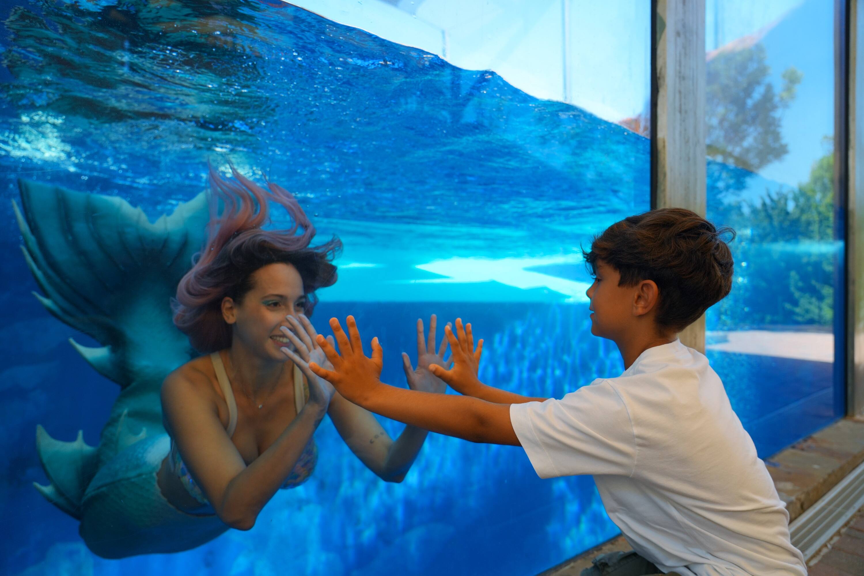 Uno spettacolo esclusivo in cui una esperta apneista, munita di coda verde pastello e con i capelli colorati, si è esibita in una delle vasche più grandi dell’acquario praticando la tecnica del "mermaiding" che trae ispirazione proprio dai movimenti sinuosi delle leggendarie ammaliatrici dei mari