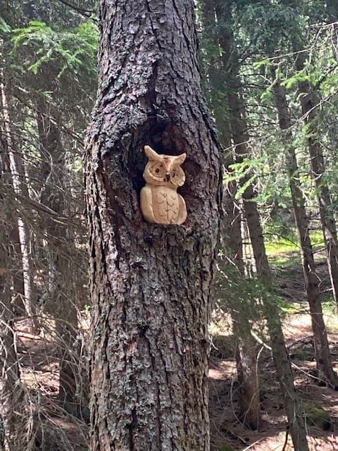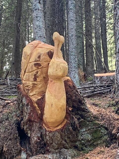 Sono tutte opere di Rob che di mestiere fa l’elettricista, ma per passione incide il legno. Scovare le sue sculture incise sui tronchi degli alberi del bosco incantato è il compito assegnato a ogni bimbo - o adulto - che vorrà avventurarsi in una singolare caccia al tesoro dove il tesoro da scoprire, alla fine, è la natura.