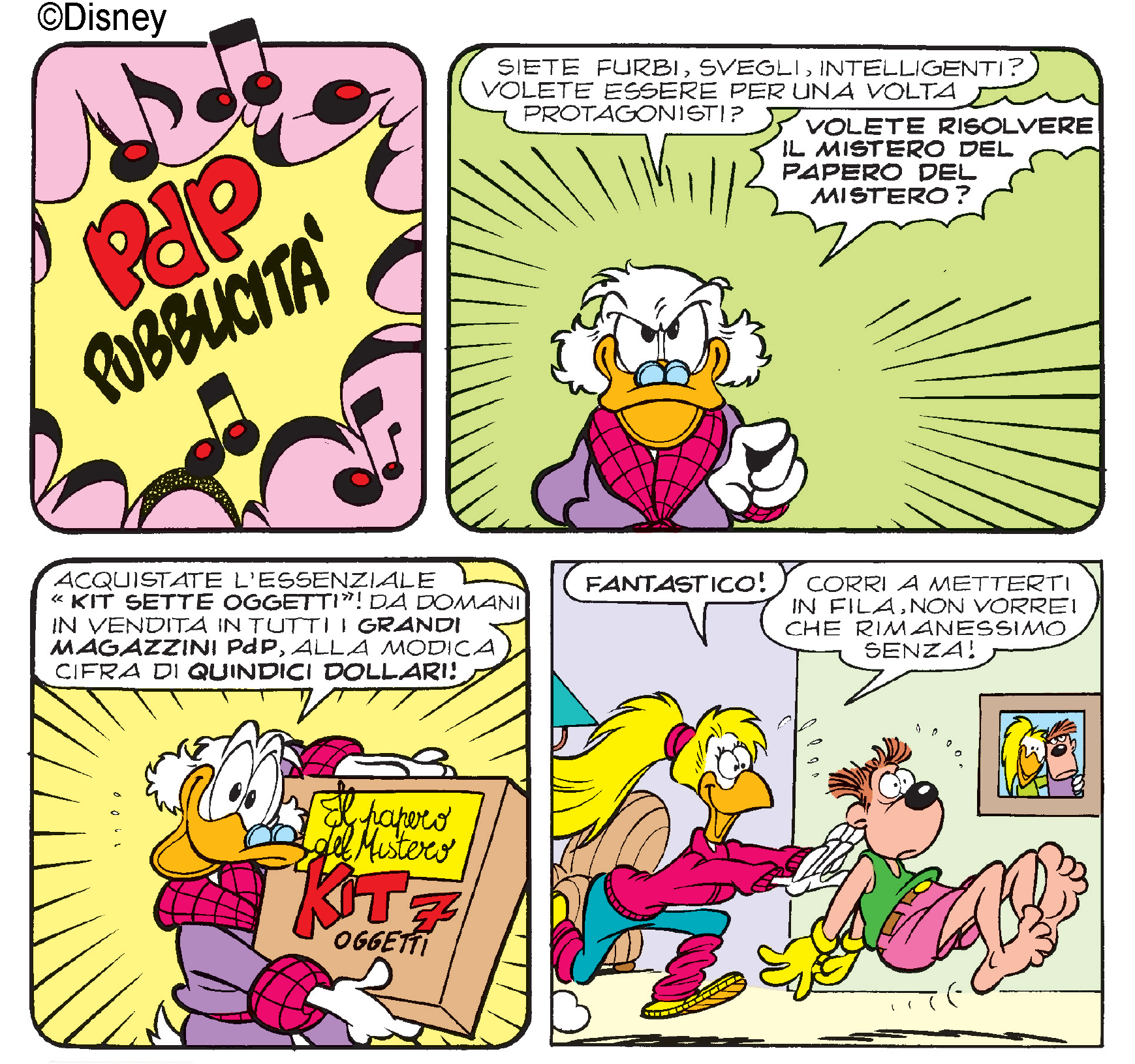 Anche per me è stata una sorpresa vedere come questa cosa si sia realizzata su larghissima scala, invadendo tutti i modi di comunicazione e narrazione. All’epoca c’era un po’ in embrione, le emittenti iniziavano a dare la possibilità agli spettatori di interagire con le telefonate. Poi c’è un’altra cosa che secondo me è attuale, il fatto che tutti i paperopolesi vogliono partecipare al mistero dei 7 oggetti, un concetto di interattività che si è evoluto moltissimo con la tecnologia e i social.