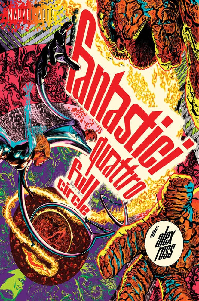 Disclaimer: chi scrive questo articolo non è un lettore esperto dei Fantastici 4, non è un loro fan, di certo non è un purista. Meglio mettere le carte in chiaro e gettare la maschera da subito: quella che state leggendo è l’opinione di un ideale lettore al primo approccio (o quasi, dai…) con la materia. Fatta questa premessa, l’Alex Ross di Full Circle, graphic novel con protagonisti i Fantastici 4 che arriva in Italia oggi, giovedì 8 settembre, grazie a Panini Comics, appena due giorni dopo la pubblicazione negli Stati Uniti, in un elegante formato cartonato di grandi dimensioni con sovracoperta, non è esattamente l’Alex Ross che ti aspetteresti.