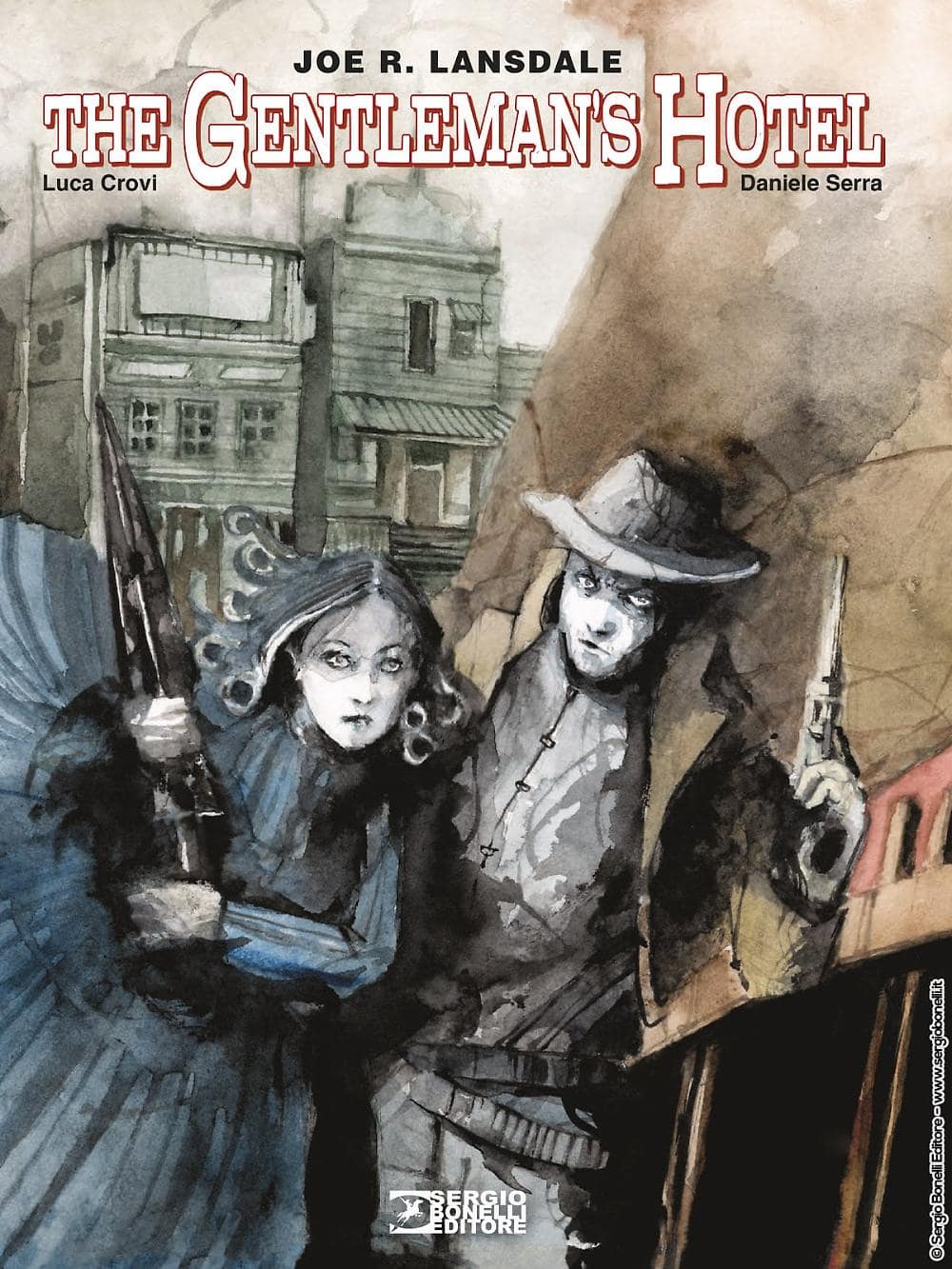 “Daniele Serra ha uno stile che è difficile da classificare. Certe volte ha un che di impressionistico, altre appare più realistico. È impossibile incasellarlo. Ha una grande inventiva e la applica sia nelle sue copertine che nei suoi fumetti”. Parole e musica di Joe R. Lansdale, professione creatore di bestseller, autore di una trentina di romanzi e svariati racconti capace di svariare tra l’horror, il noir, la fantascienza. Sì, Daniele Serra è il disegnatore che piace ai grandi autori internazionali, che ha lavorato con Lansdale ma anche con Clive Barker e Stephen King, e che a un proficuo lavoro di illustratore ne ha affiancato più recentemente uno da fumettista con risultati altrettanto interessanti, disegnando Murder Ballads, opera che con la sceneggiatrice Micol Beltramini gli è valsa il Premio Coco per il Miglior Libro all’ultimo Etna Comics. Daniele Serra è anche il disegnatore di Gentleman’s Hotel, graphic novel di Sergio Bonelli Editore che adatta a fumetti, su sceneggiatura di Luca Crovi, un omonimo racconto di Lansdale. Un horror con atmosfere western da lasciare col fiato mozzato che esce in fumetteria e libreria il 23 settembre.