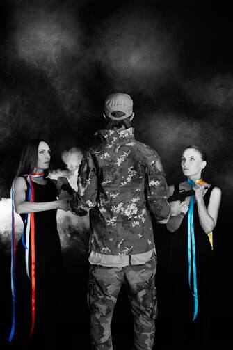 Filo conduttore delle 12 immagini sono i lacci con i colori delle bandiere che fanno distinguere le ragazze ucraine da quelle russe e che rappresentano i legami che esistono fra queste due popolazioni