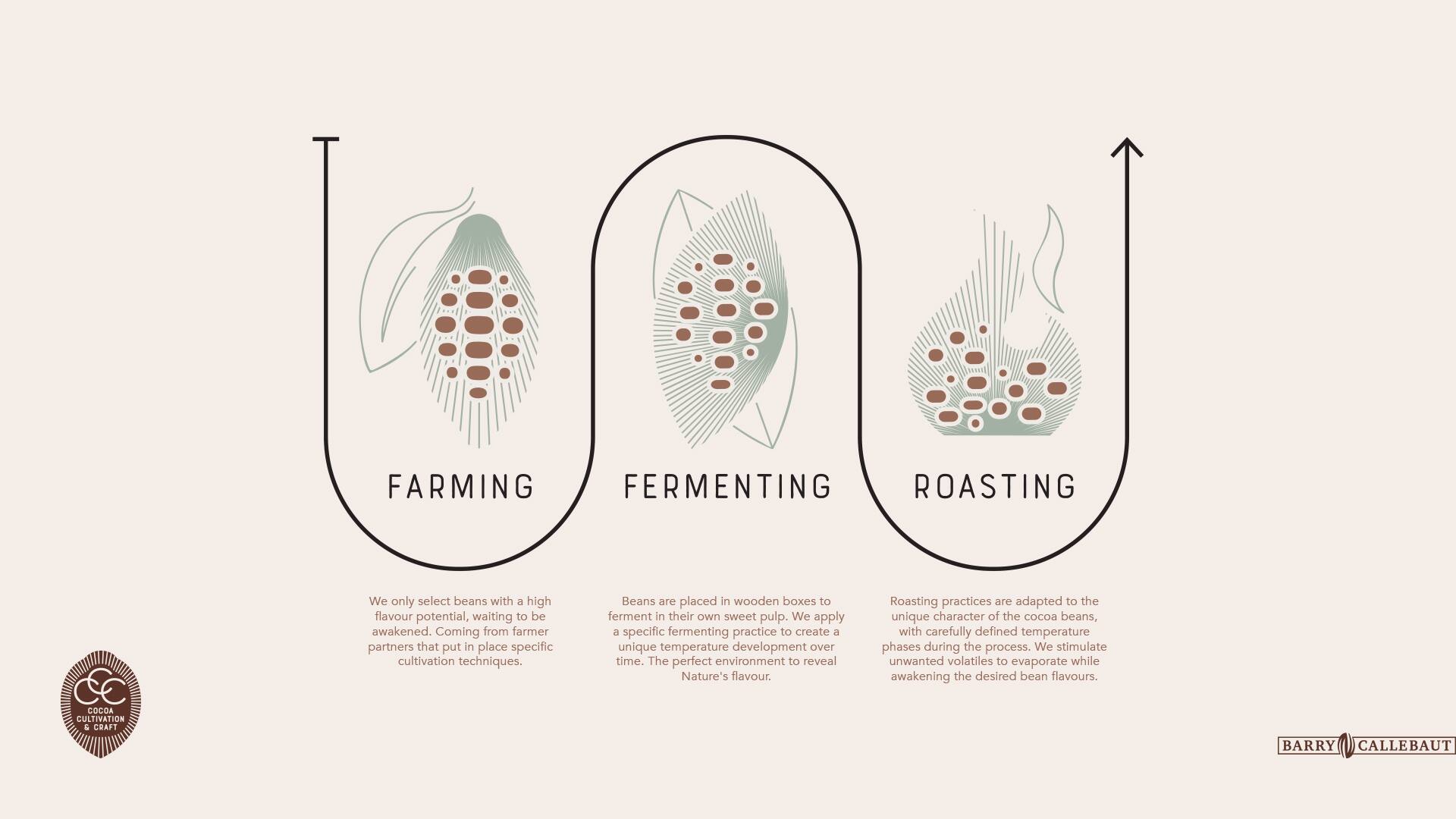Per la seconda generazione di cioccolato, fondamentale risulta il profilo aromatico della fava di cacao lungo tutta la filiera: dalla coltivazione alla fermentazione e tostatura, tutti i processi sono coinvolti nella definizione delle caratteristiche di sapore della fava di cacao. Barry Callebaut ha reinventato il processo di produzione del cioccolato - qualificato come principio Cocoa Cultivation & Craft (CCC) - per riconoscere le qualità speciali di ciascuna fava di cacao ed esaltarne le sfumature di sapore.