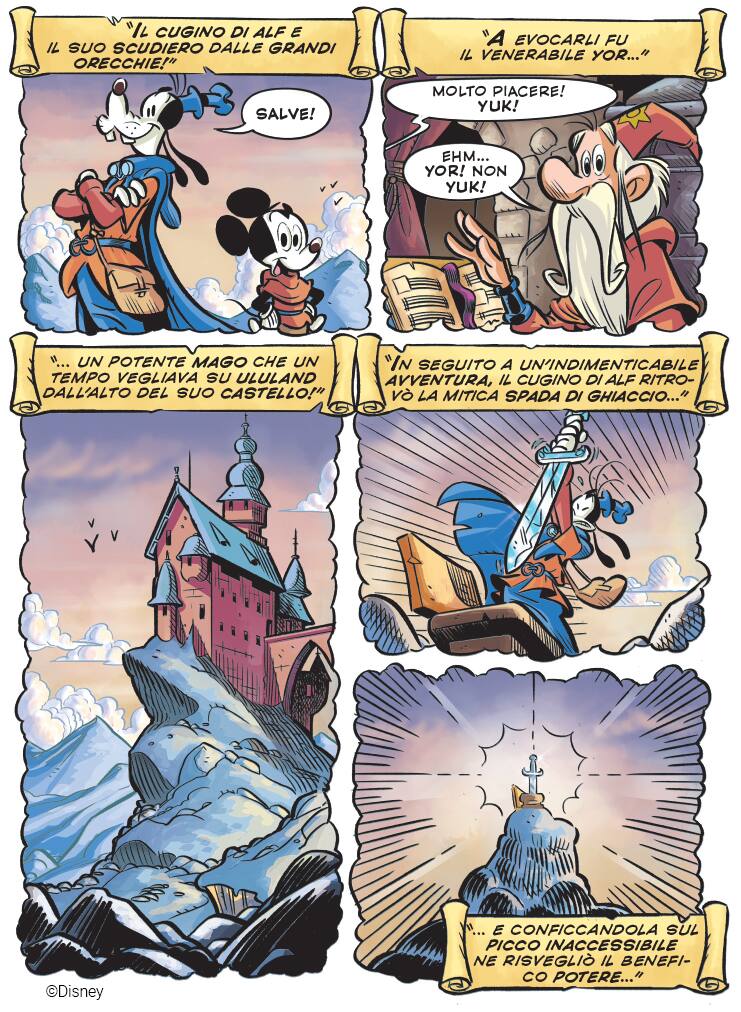Beh certo, se uno toglie quello è finita la storia. Una storia non si basa mai sulla trama ma sul modo in cui vengono messi in scena i personaggi. La Spada di Ghiaccio funziona perché Pippo è Don Chisciotte e Topolino e Sancho Panza. Se togli quello, non è più La Spada di Ghiaccio. Rimangono Pippo e Topolino, sono coprotagonisti insieme, ma c'è un'inversione del peso narrativo dei due rispetto a quello a cui siamo abituati. E Pippo stravince perché è il più simpatico ed è un grande eroe a modo suo.