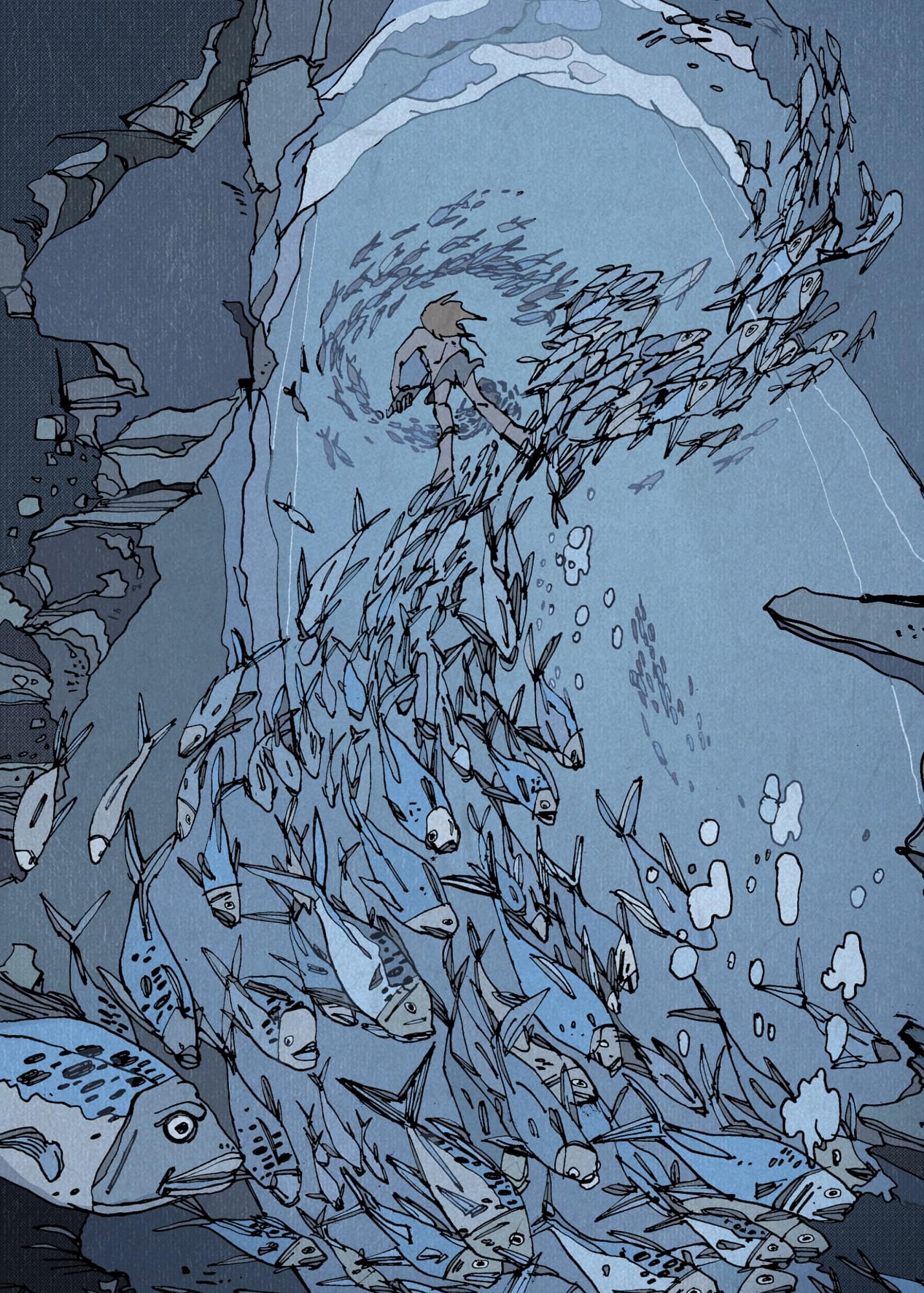 Io adoro i pesci e in generale mi piace immaginare una scena complicata e realizzarla. Mentre disegno mi immergo nella scena ed è questo il mio divertimento. Poi certo, quando la tavola viene bene è un’altra soddisfazione, ma la maggiore è quella di riuscire a entrare dentro la scena.