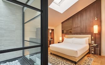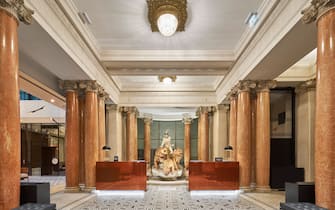 L’imponente ingresso conduce alla lobby, posta di fronte all’iconica ed imponente fontana in marmo raffigurante Mercurio con tre leoni. 125 le camere a disposizione degli ospiti del Double Tree by Hilton dove sono stati mantenuti gli affreschi originali, i marmi e i mosaici. Al primo piano il Novecento Restaurant Trieste che vuole essere un omaggio alle origini del palazzo