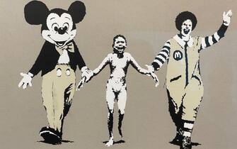 Tra le opere in mostra troviamo la celeberrima Napalm con la bambina vietnamita in fuga dal bombardamento mano nella mano con due mascotte dell’entertainment nel mondo contemporaneo. “Amo i graffiti. Amo questa parola. I graffiti per me sono sinonimo di meraviglia. Qualsiasi altro genere artistico in confronto è un passo indietro, non c’è dubbio” (Bansky)