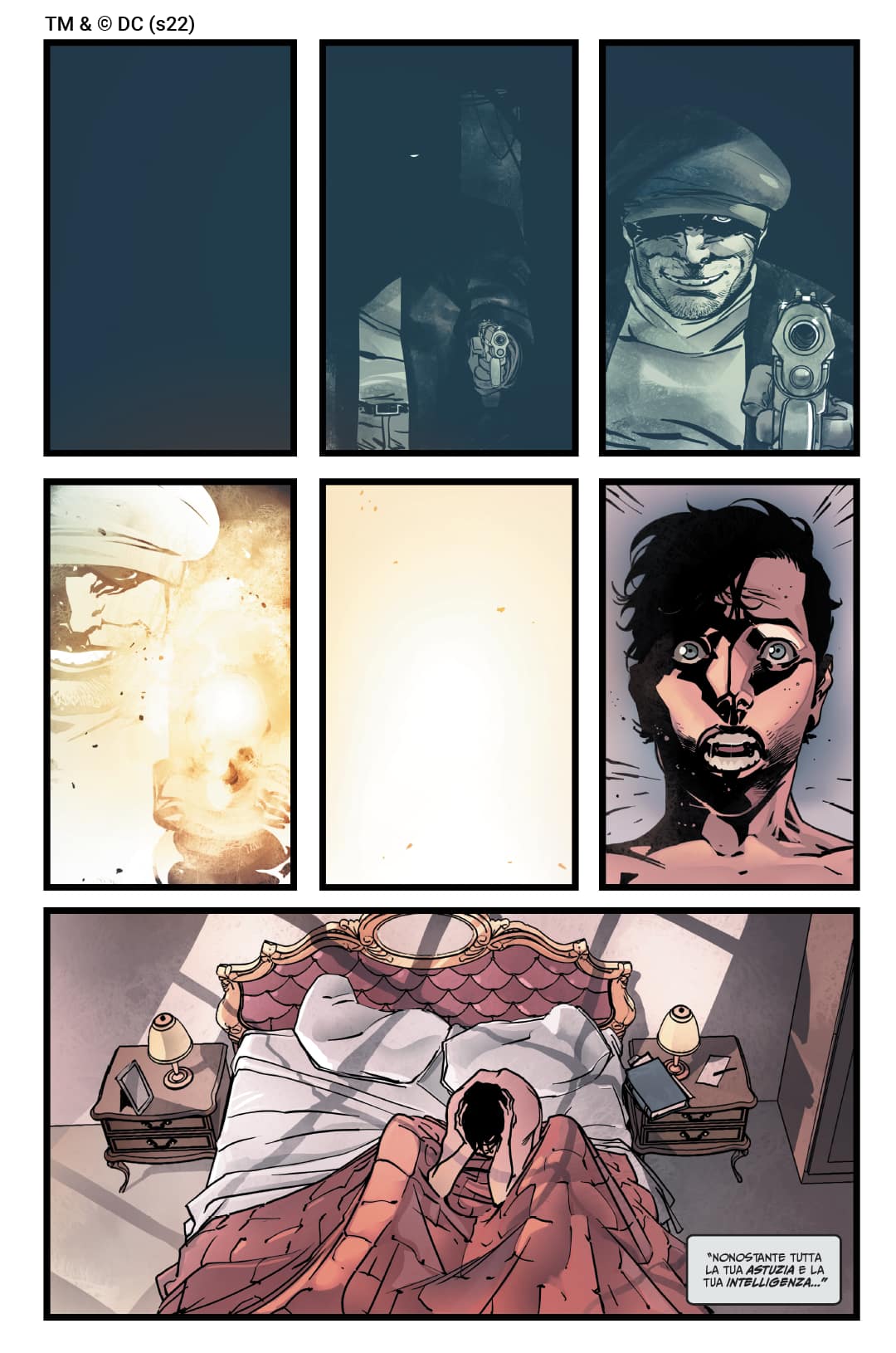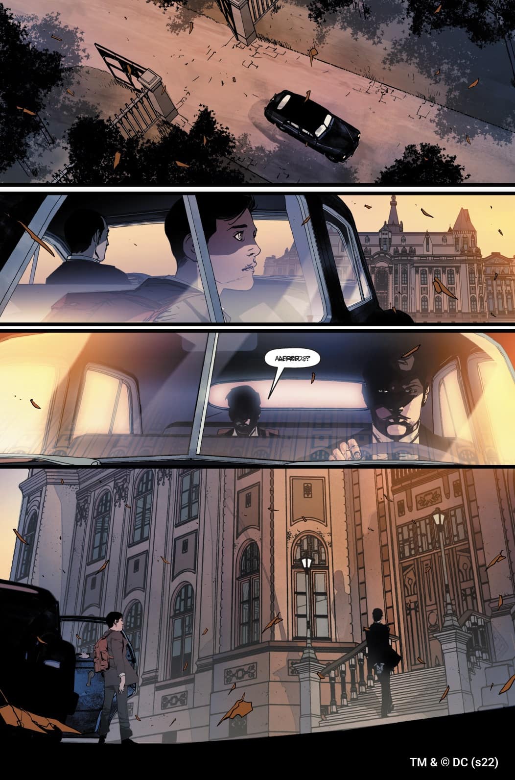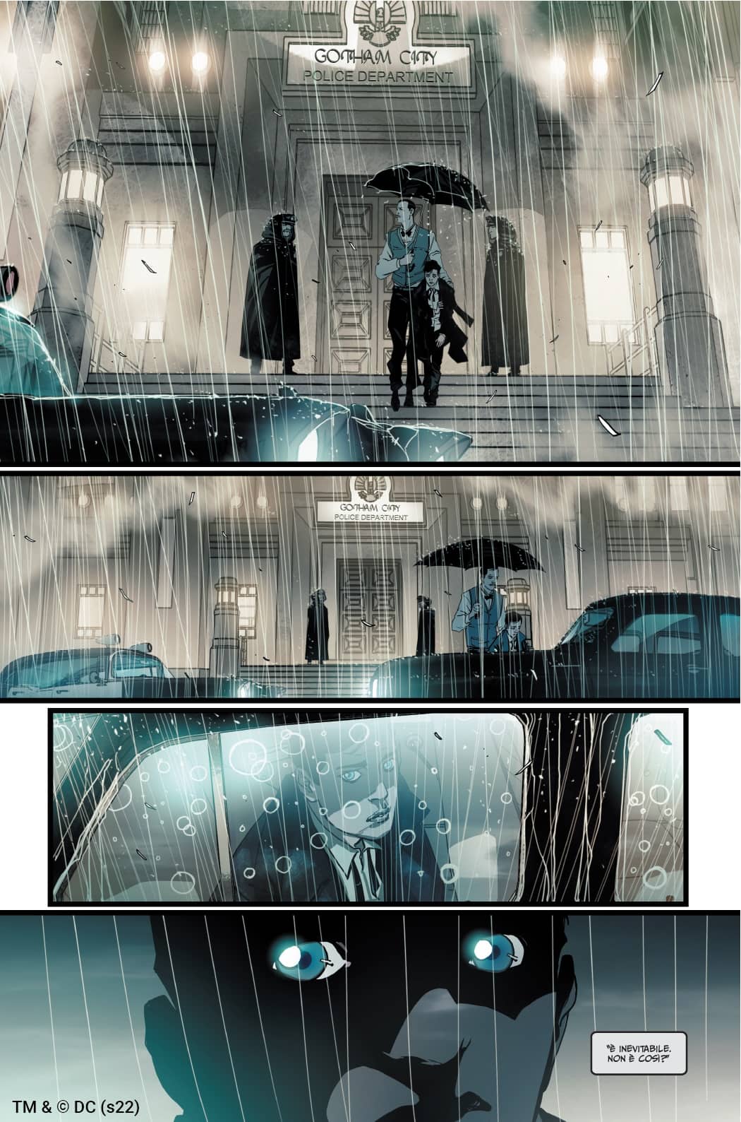 A ispirarmi graficamente, leggendo la sceneggiatura di Chip e dove puntava, questo ragazzino che non sa cosa fare, l’idea di cancellare quasi il Bruce Wayne triste per metterne in campo uno che ha un forte senso di rivalsa, sono state esperienze personali di vita mia che mi hanno creato una sensazione di simbiosi emotiva col personaggio. Ho puntato molto sugli sguardi, sulle sue fragilità, su una rabbia più nervosa e meno lineare. Bruce è un ragazzino che ha perso una guida e che deve ancora trovare il controllo che avrà il da uomo maturo. Mi sono divertito anche ad anticipare la presenza di Batman inserendo degli easter egg che già dalla prima pagina rimandavano al simbolo del pipistrello...