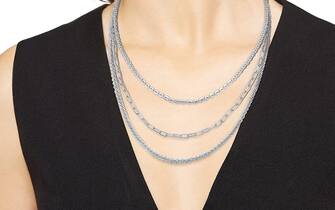 La collana multifilo è ormai un classico della gioielleria contemporanea. Da Breil, venduto da Amazon, questo gioiello in acciaio in versione silver, misura 52 centimetri ed è adatto per completare in maniera raffinata e preziosa ogni tipo di look. Prezzo: € 67,00