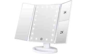 Le luci al Led e il design ultra moderno fanno di questo specchio da toeletta uno strumento indispensabile per realizzare un make-up perfetto. Si ricarica con Usb ma può essere alimentato anche con batterie. Prezzo: € 32,99