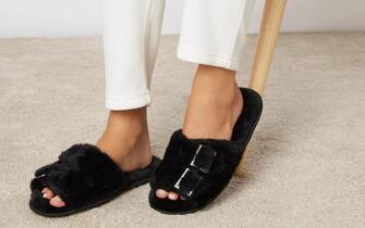 Comode, in calda pelliccetta, le pantofole Yamamay Chalet Chic sono un accessorio elegante per stare a casa in totale relax. Sul davanti, hanno fibbie con strass brillanti. Disponibili online e in store in tre misure. Prezzo: € 19,95