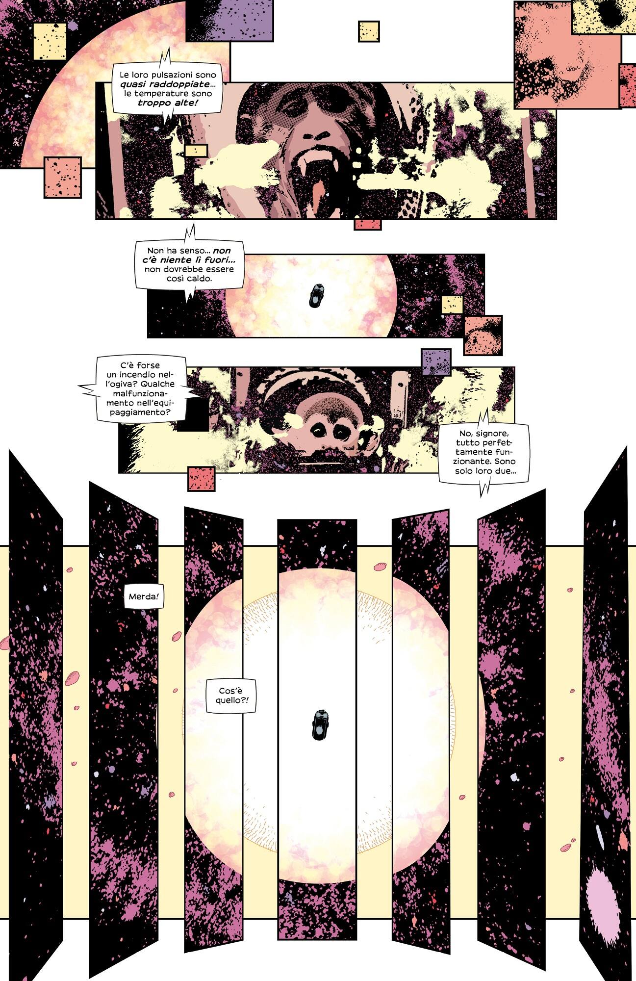 Una storia che non potrebbe esistere senza l’arte di Andrea Sorrentino, capace di spingersi sempre oltre nella sua urgenza di sperimentare. Tutta la visionarietà del fumettista campano esplode pienamente nelle splash page e nelle doppie costruite tra elementi geometrici e figure animali. La costruzione di un mondo dai confini e i contorni costantemente mutabili avviene attraverso la negazione della definizione di spazi astratti in cui a essere concreti sono i corpi di due scimmie e una cagnetta, e i loro sentimenti. Un universo in cui viene naturale perdersi e lasciarsi trascinare semplicemente dall’emozione, dimenticando per un istante i confini della realtà che conosciamo.