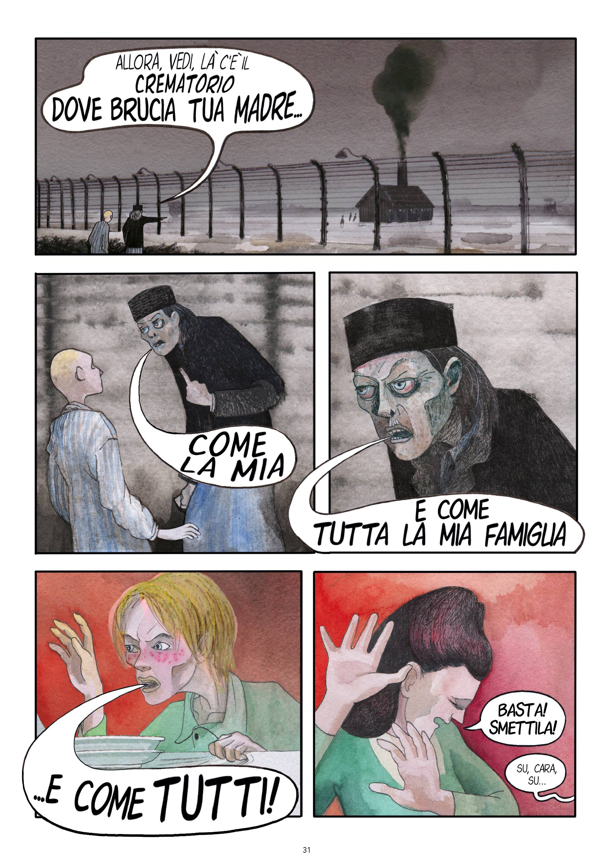 Sì. Io l’ho capito scrivendo e disegnando la prima parte del libro, la più dura, quella che parla dei lager e dei campi di sterminio. Inizialmente uno pensa: ma come si fa a tacere di una cosa così enorme? Ci si mette nei panni di chi l’ha vissuta e viene in mente subito di raccontarla. Invece più mi addentravo in questo orrore, più entravo nel problema morale di scegliere le immagini più efficaci per mostrarlo, più mi rendevo conto che non esistevano parole per descriverlo. Gli stessi SS dicevano ai prigionieri che nessuno gli avrebbe mai creduto. La stessa Segre ci ha messo tanti anni a parlarne. E penso che sia così anche per noi che non lo abbiamo vissuto personalmente, è comunque qualcosa che è difficile da assimilare. Per me è stato così e questo lavoro è stato liberatorio. Così come lo fu, per lei, l’intervista che fece mia zia.