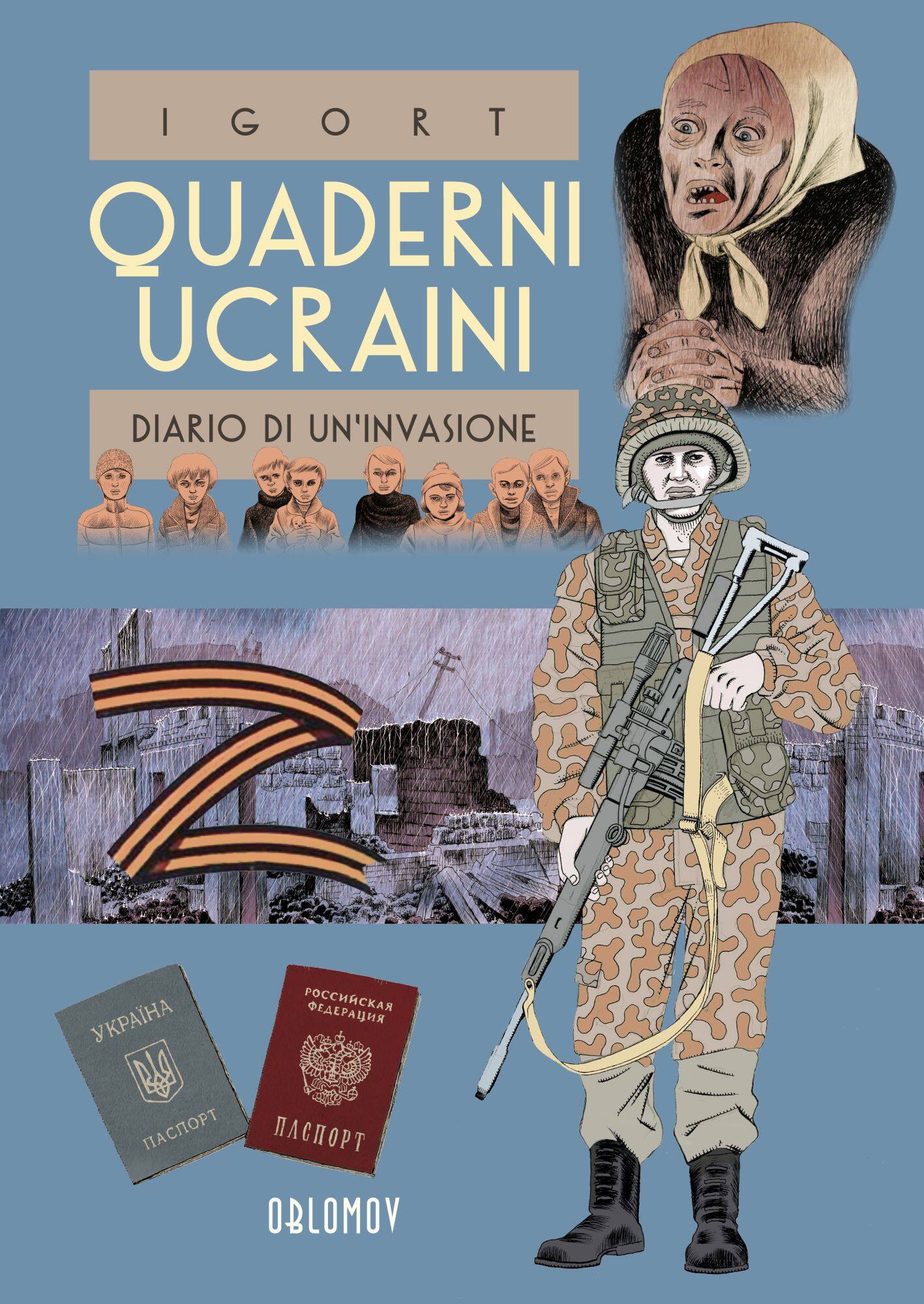 Per giorni, il fumettista sardo a cui i genitori diedero un nome russo per amore dei grandi romanzieri del XIX secolo e che a Dnipropetrovsk ha sposato Galya per poi vivere due anni in Ucraina, ha riempito i suoi social di testimonianze raccolte in prima persona e tramite amici. Costantemente in contatto via telefono con l’Ucraina invasa dagli “Orchi”, Igort non ha parlato con la stampa per mesi mentre la sua mente e il suo cuore stavano sulle sponde del fiume Dnipro. Queste testimonianze sono oggi raccolte in Quaderni Ucraina. Diario di un’invasione, finito di disegnare a settembre 2022, pubblicato a ottobre da Oblomov (168 pagine a colori, 20 euro).