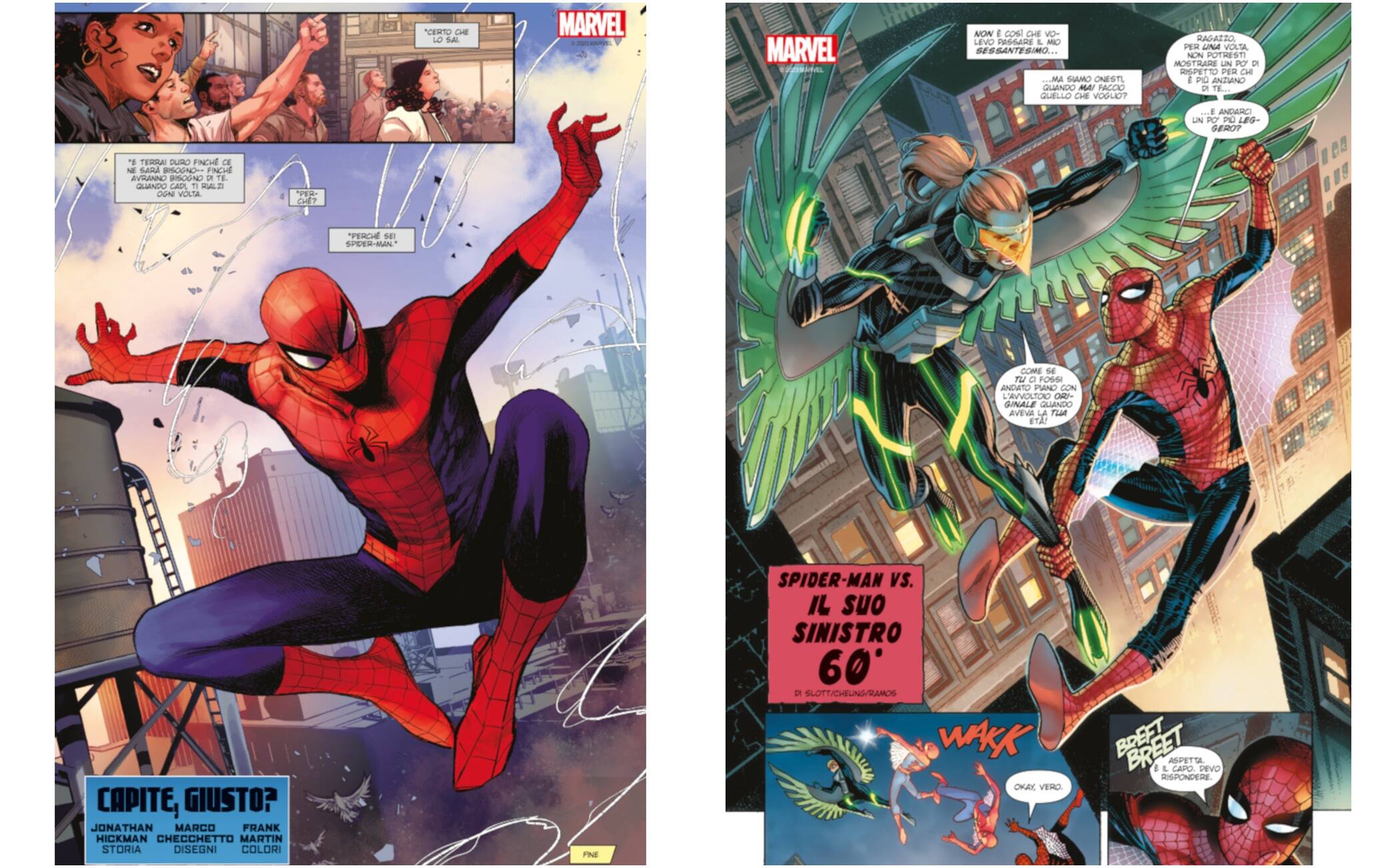 Amazing Fantasy #1000 si legge tutto di un fiato, e accanto alle perle di cui abbiamo parlato, senza fare troppi spoiler, lasciano il segno la versione di uno Spider-Man che non si rassegna ad andare in pensione malgrado l’età, anche biologica, con cui se lo immagina il terzetto Slott/Cheung/Ramos e quella firmata Rowell/Coipel in cui si apprezza la fatica che fa Peter Parker a stare al passo del suo alter ego ragnesco.