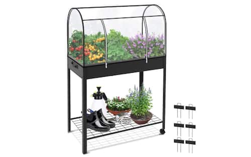 Per un risultato professionale, l’ideale è acquistare una fioriera rialzata in metallo con copertura in PVC. Questa, trasparente e rimovibile, è dotata di finestra e cerniera e migliora la fotosintesi delle piante che, così, sono ventilate e crescono più rapidamente. Euro 130