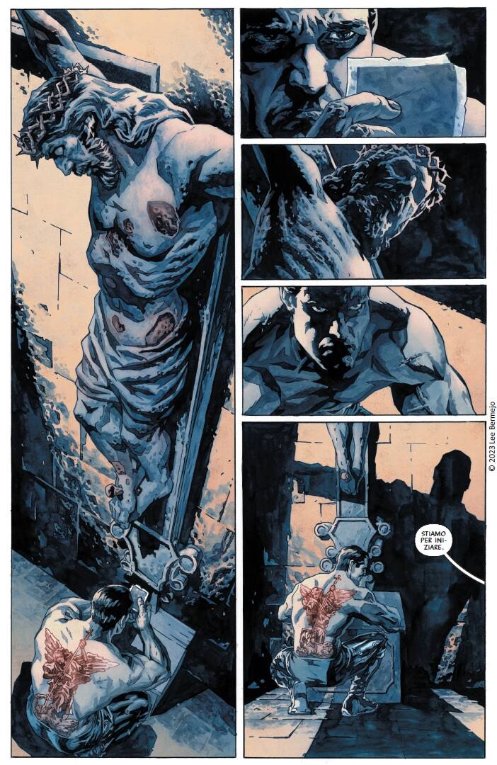 Il passatempo preferito degli abitanti ricchi e annoiati di New Angeles consiste nell’assistere agli show dei Suiciders, gladiatori che si affrontano e ammazzano nelle arene. Il più famoso di questi è Il Santo, protagonista del fumetto, con una storia personale piena di segreti e conti in sospeso. L’arte di Bermejo, la sua espressività, la sua capacità di dipingere corpi estremamente dettagliati, la fanno naturalmente da padrona su una narrazione che comunque offre spunti interessanti e che, nelle pieghe del racconto distopico, non manca di far emergere tematiche sociali importanti, dalle divisioni sociali ed economiche all’immigrazione.
